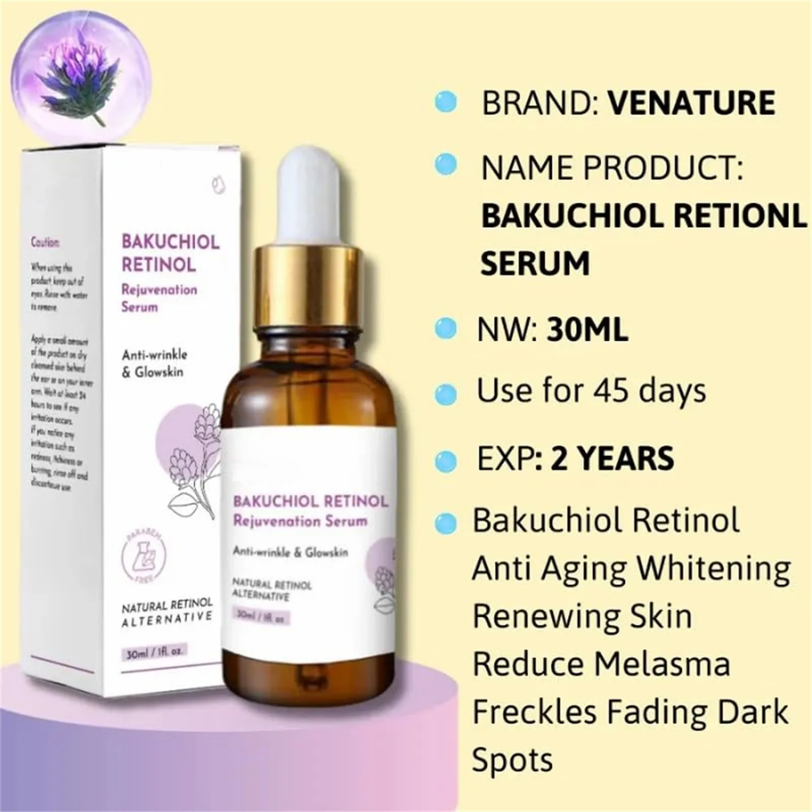 Anti-Aging Retinol Collagen Rejuvenation Bakuchiol Retinol Improve Skin Elasticity Gentle And Non-irritating For Face 30ml