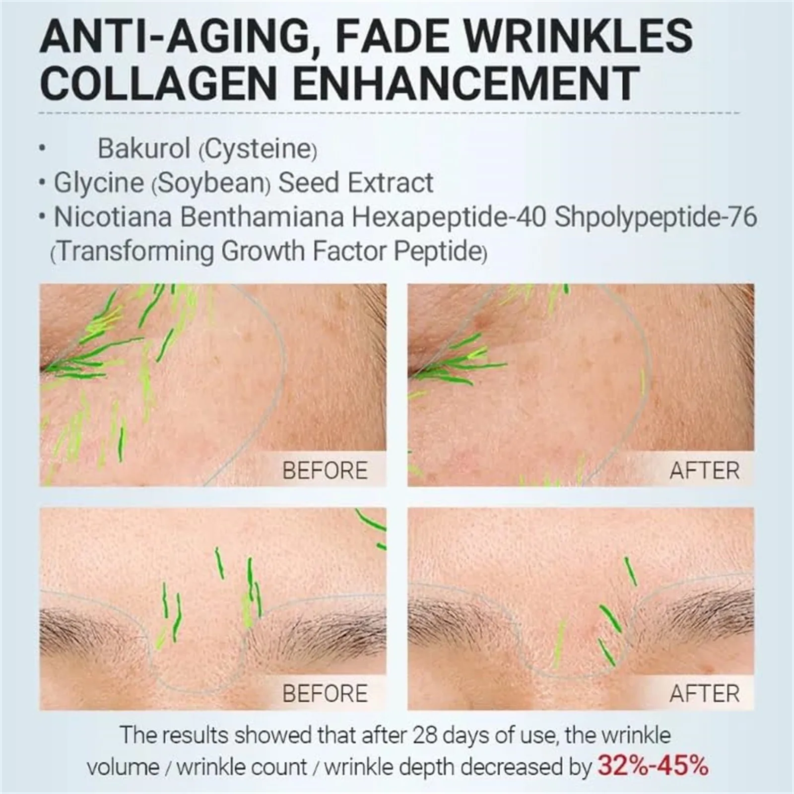 • Suitable for All Skin Types:Whether you have dry, oily, or combination skin, our anti-wrinkle is gentle enough to suit your needs. It's non-greasy and easily absorbed, leaving your skin feeling hydrated and refreshed without any sticky residue.